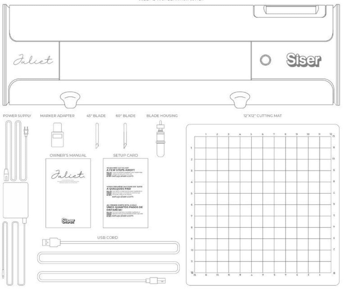De Siser Juliet snijplotter wordt geleverd met: